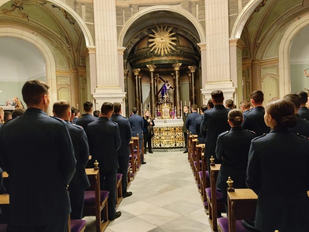 La visita, integrada por un total de 149 alumnos, así como por el coronel director de la Academia General del Aire, Luis Felipe González Asejón, han sido recibida por Mª Teresa Marín Torres, directora del Museo Salzillo; y Emilio Llamas Sánchez, presidente de la Real y Muy Ilustre Cofradía de Nuestro Padre Jesús y presidente de la Comisión Ejecutiva del Museo Salzillo.